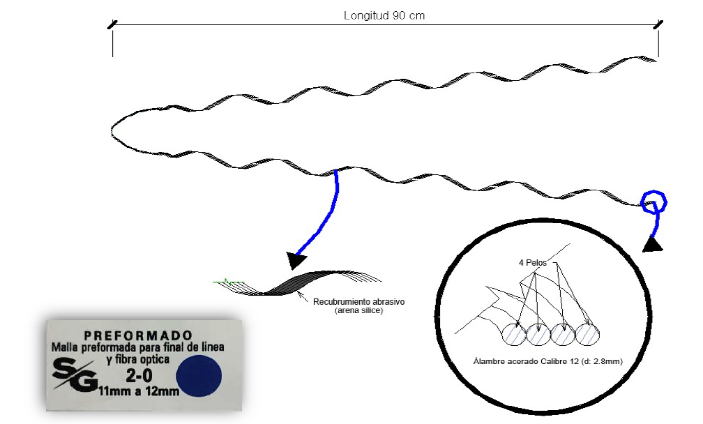 Fabricadas con alambre acerado galvanizado, utilizadas para la retención y tensión de la fibra óptica. Se clasifican por colores dependiendo el diámetro de la misma.